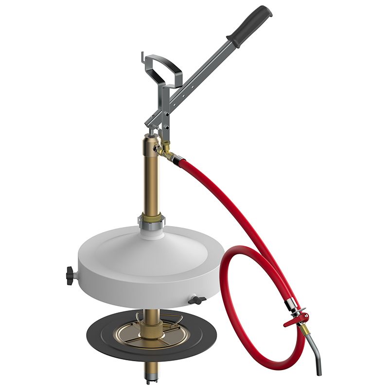 Переносний ручний мастильний насос низького тиску, що приводиться в дію важелем. При кожному циклі подається 50 грам мастила. Він практичний та функціональний, його можна використовувати для заповнення блоків керування, картерів, шприців для ручного змащування. Дозволяє легко замінити ємність зі змащенням (бочку або відро). Оснащений притискною мембраною, яка захищає мастило та сприяє довготривалій підтримці її властивостей.
