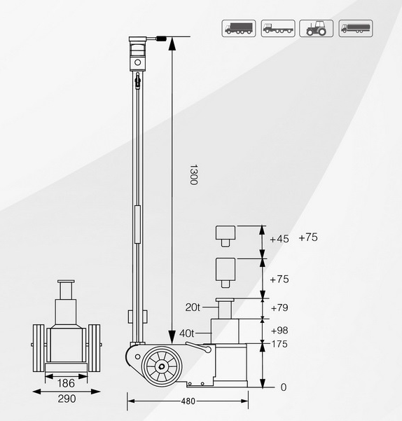 Домкрат пневмогідравлічний підкатний 40/20 т