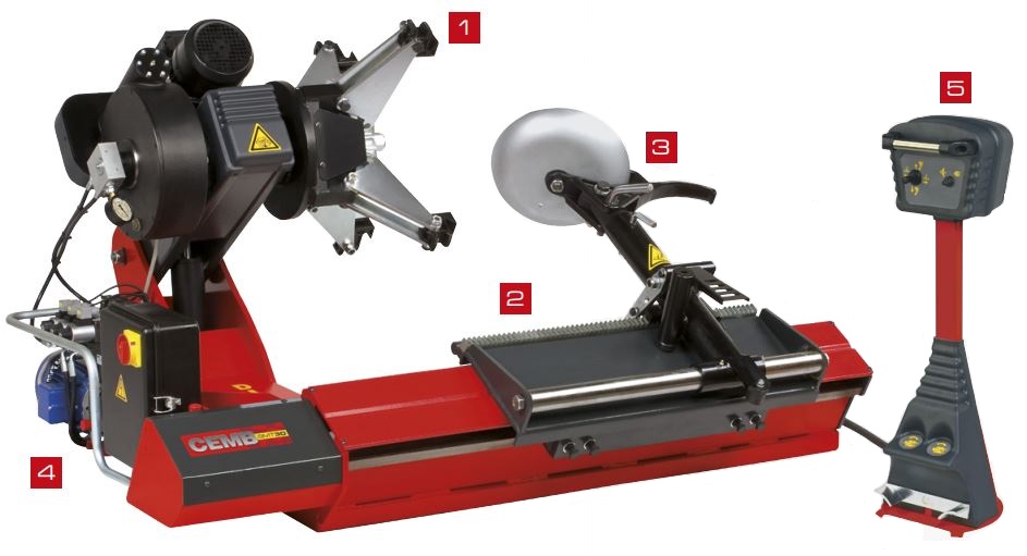 1-швидкісний гідравлічний патрон в обох напрямках обертання, з можливістю затиску від 14" до 30". 4 самоцентрувальні губки з регульованим тиском були розроблені, щоб запропонувати різні рішення для фіксації та гарантувати максимальну безпеку з усіма формами та профілями ободів.