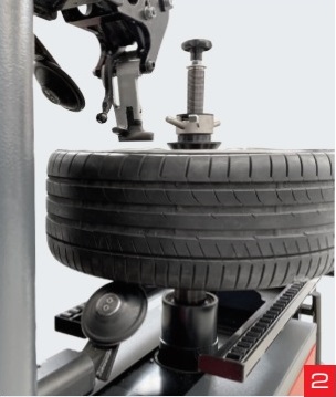 Комбінований віджим бортів завдяки двом роликовим важелям та їхньому руху вперед. Нижній ролик завжди вирівнюється з інструментом для монтажу/розбирання. Верхній валик, однак, завжди дотичний до центру кола. Обома роликами можна керувати за допомогою спеціальних кнопок автоматичного просування. Нижній роликовий важіль інтегрований в основну структуру рами, що робить його особливо міцним і здатним чинити ще більш ефективний тиск, щоб полегшити віджим нижнього борта шини | |||