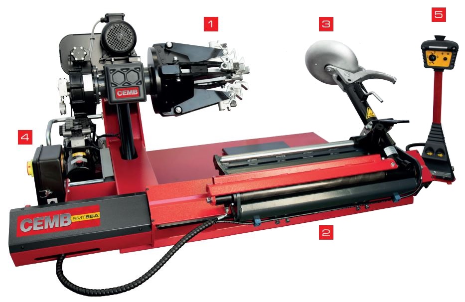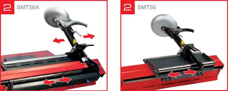 Універсальний електрогідравлічний шиномонтажний пристрій, призначений для роботи на камерних та безкамерних колесах вантажівок, автобусів, тракторів і землерийних машин з максимальним діаметром 2300 мм і максимальною шириною 1300 мм для версії SMT56A і 1150 мм для версії SMT56 . Розроблений для інтенсивного та професійного використання, самоцентруючий патрон затискає ободи з канавками та стопорними кільцями від 14" до 42" і його робочу потужність можна збільшити до 56" за допомогою додаткового комплекту розширення.
