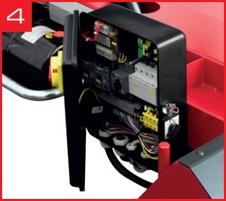 Машина оснащена низьковольтним мобільним блоком керування, який дозволяє їй ідеально розташуватись у робочій зоні. Раціональне розташування елементів керування дозволяє уникнути введення оператора в оману.