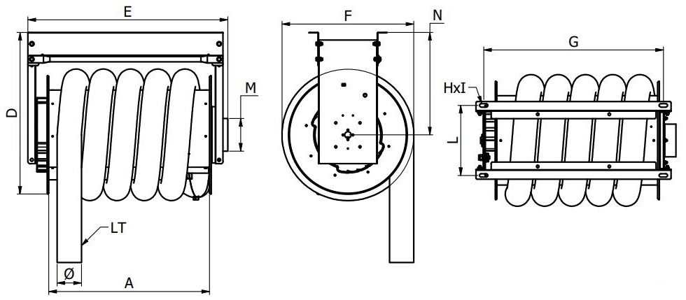 Електричні котушки для шланга мають однофазний двигун 230 В для розмотування та змотування шланга, який вже встановлений на циліндрі.