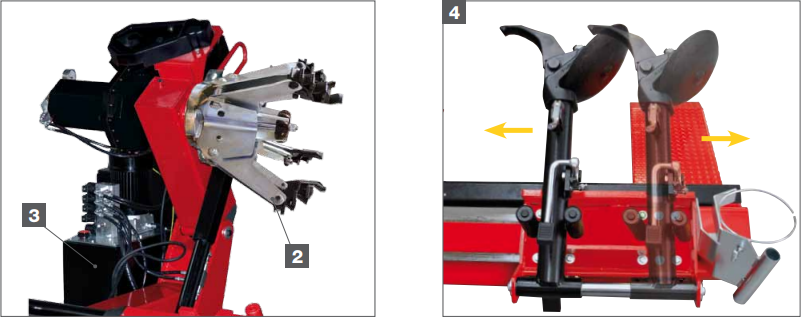 1 Проста та інтуїтивно зрозуміла панель керування встановлена на практичній шарнірній руці, що дозволяє оператору працювати в повній безпеці 2 Самоцентруючий патрон з діапазоном затиску від 14" до 26" з обертанням за годинниковою стрілкою та проти неї 3 Гідравлічний блок живлення 4 Каретка з гідравлічним переміщенням ліворуч і праворуч і рукояткою інструменту з безпечною системою блокування |