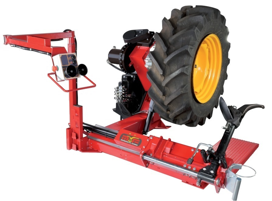 Електрогідравлічний шиномонтажний станок для вантажівок, автобусів, тракторів і землерийної техніки з колісними дисками з пазами або еластичними кільцями, а також з безкамерними або камерними шинами
