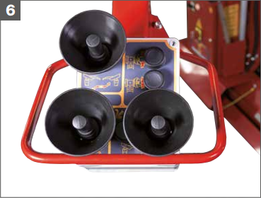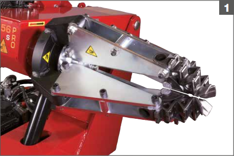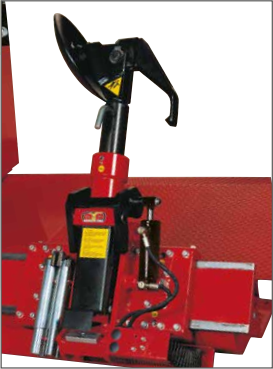 Поворотний редуктор містить електродвигун у комплекті з електромеханічним гальмом. Ця автоматизована система забезпечує абсолютну точність під час демонтажу та монтажу шин. Затискач з гідравлічним приводом сумісний з колесами від 14" до 56". Дві швидкості обертання.