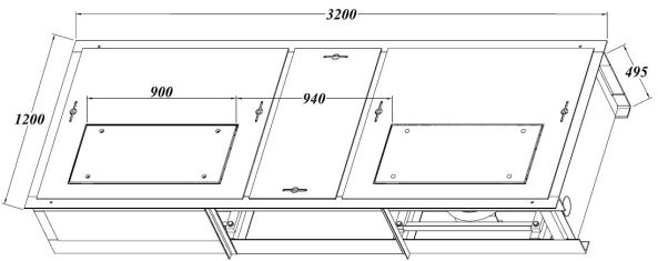 встановлені розміри (Ш x Д x Г) | 3200 x 1200 x 495 мм |