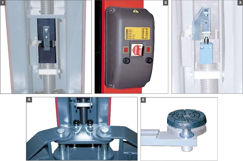 3. Електричний запобіжний пристрій, що зупиняє підйом у разі надмірного зношування опорної ходової гайки.