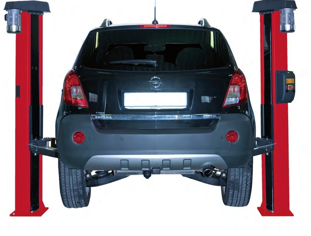 Електромеханічний двостійковий підйомник з двома двигунами та електронною системою синхронізації