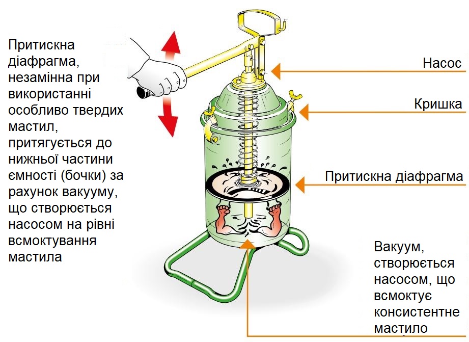 Ручний мастильний пристрій, що приводиться в дію важелем. Воно практичне і функціональне, його можна використовувати в будь-якому робочому середовищі. Дозволяє швидко змастити під високим тиском вузли будь-якого автомобіля чи механізму. Оснащено притискною мембраною, яка захищає мастило та сприяє довготривалій підтримці її властивостей