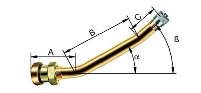 Посадковий діаметр: 9,7 мм; А: 30 мм; B: 45 мм; C: 25 мм; a°27; b°42; максимальний тиск: <14 бар; зусилля на зажимній гайці, Н·м: 12-15;